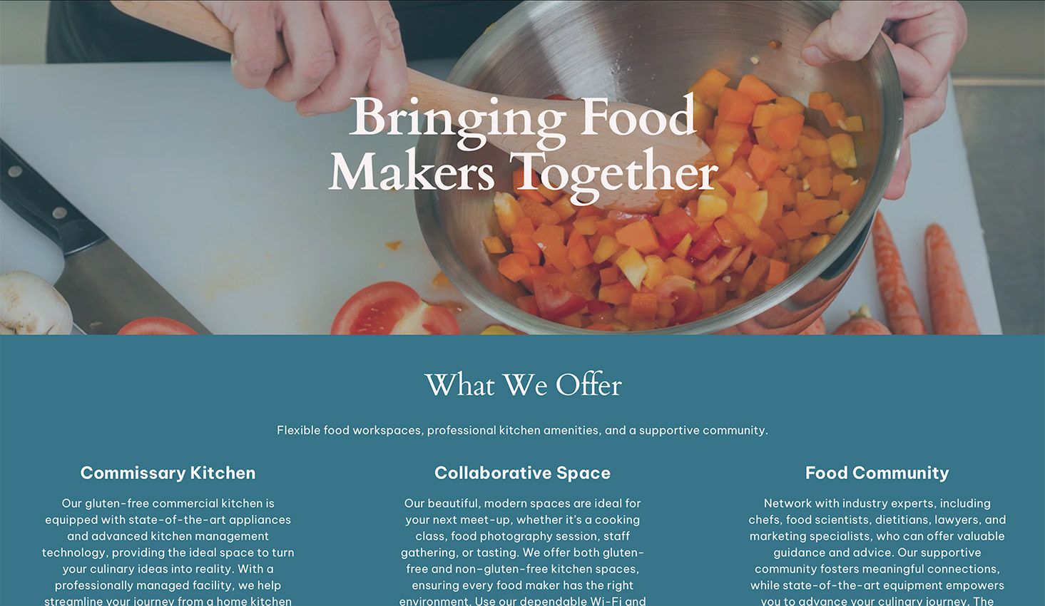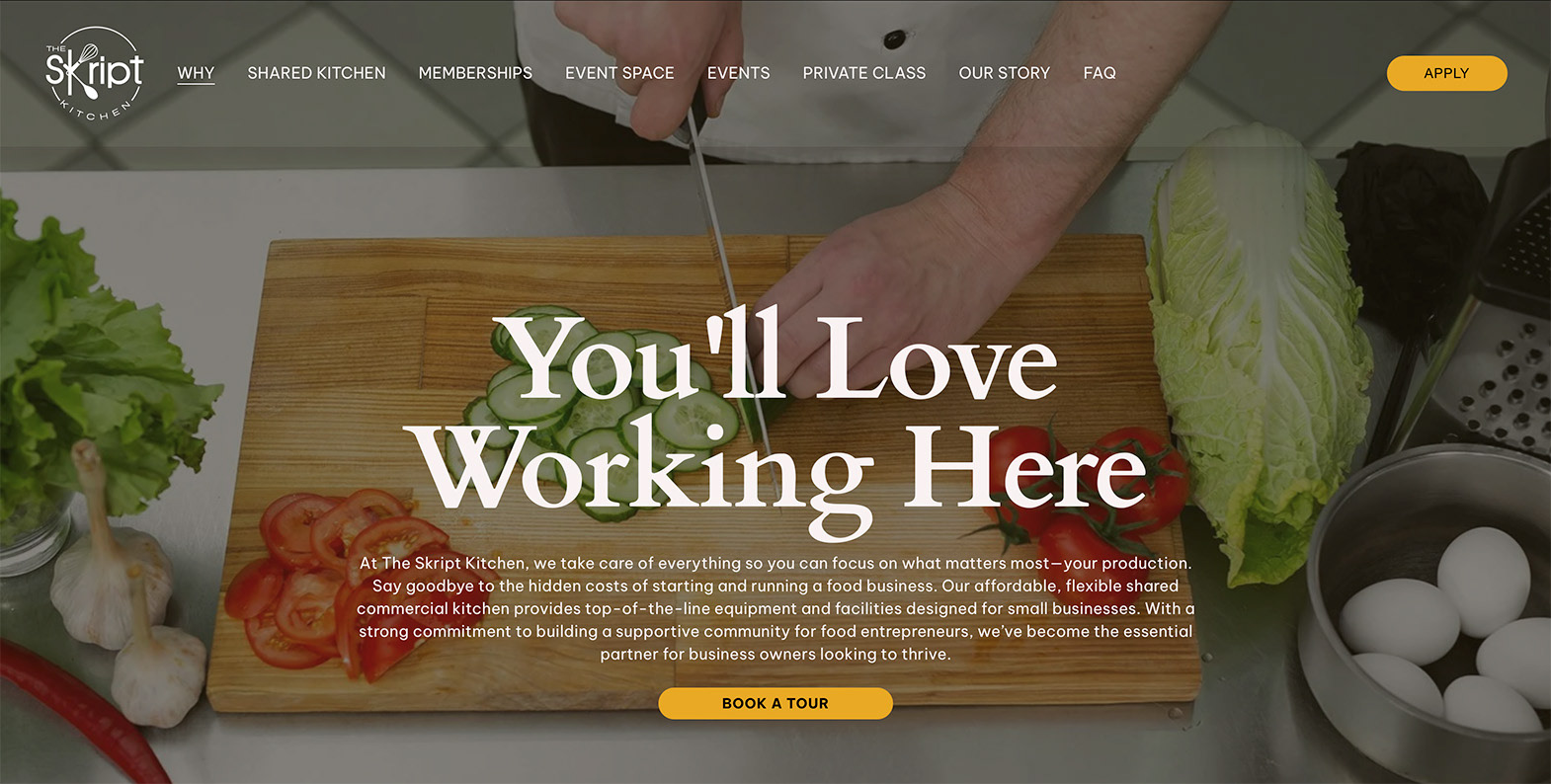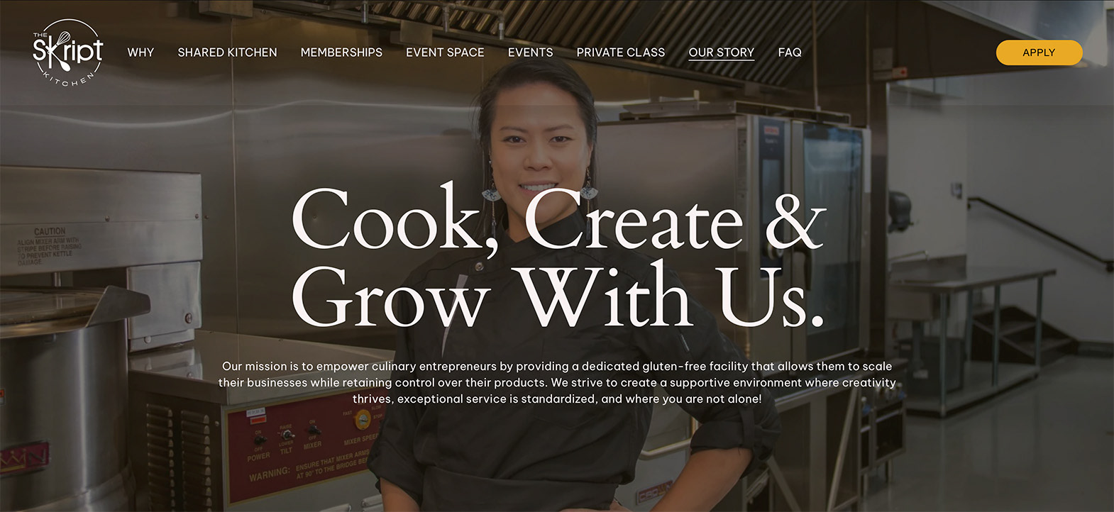 The goal was to build a website and supporting content to introduce The Skript Kitchen’s services while the facility was still under construction. The website needed to attract potential food entrepreneurs interested in joining the gluten-free shared kitchen, while also showcasing cooking classes and the event space. Another key objective was ensuring the website would be easy for the team to update and maintain after launch.